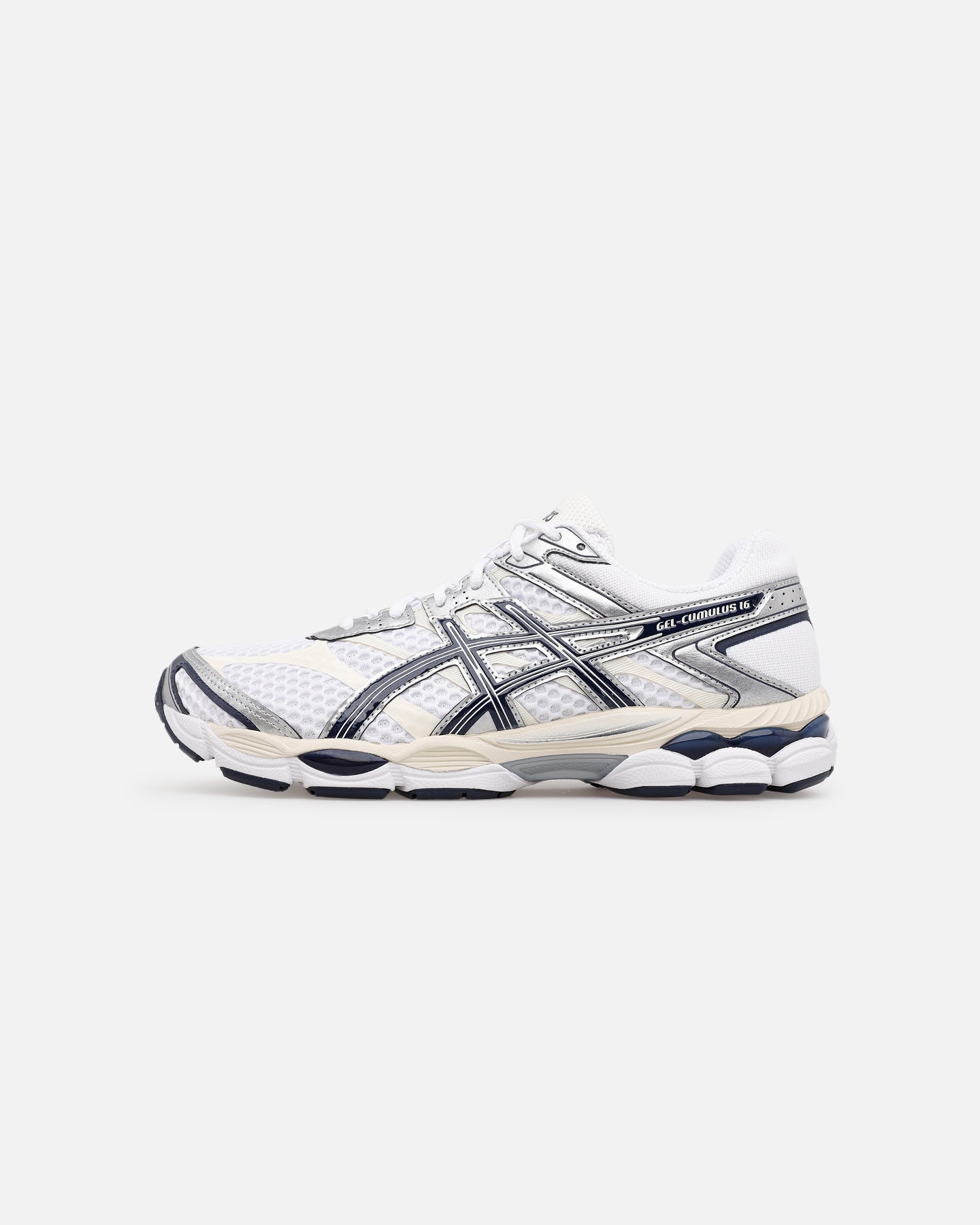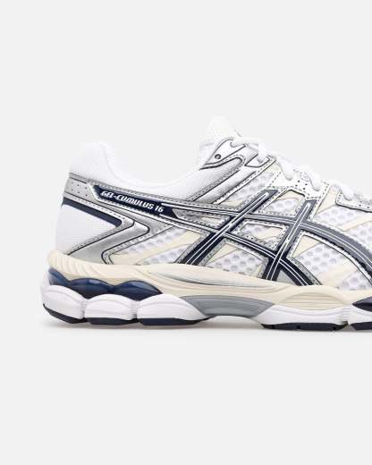 The GEL-CUMULUS™ 16 sneaker is formerly recognized for its soft cushioning capabilities while running longer distances. Its upper construction features a combination of glossy synthetic leather overlays, no-sew paneling, and open mesh underlays. The sneaker's soft cushioning properties are left intact. It features dual GEL™ technology inserts, FLUIDRIDE™ technology, and FLYTEFOAM™ technology to help provide a comfortable feel underfoot. Cop yours today at Culture Kings.- Synthetic leather- Breathable mesh underlays- FLUIDRIDE™ technology- Rearfoot and forefoot GEL™ technology- Padded collar- Rubber outsole- Lace-up closure- Low-cut silhouette- Colour: White/Navy- Style: 1203A733-103