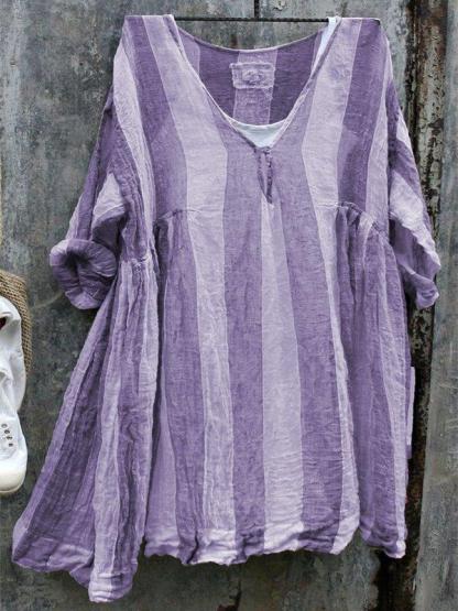 Casual 3/4 Sleeve V Neck Striped Bat Sleeve Tops